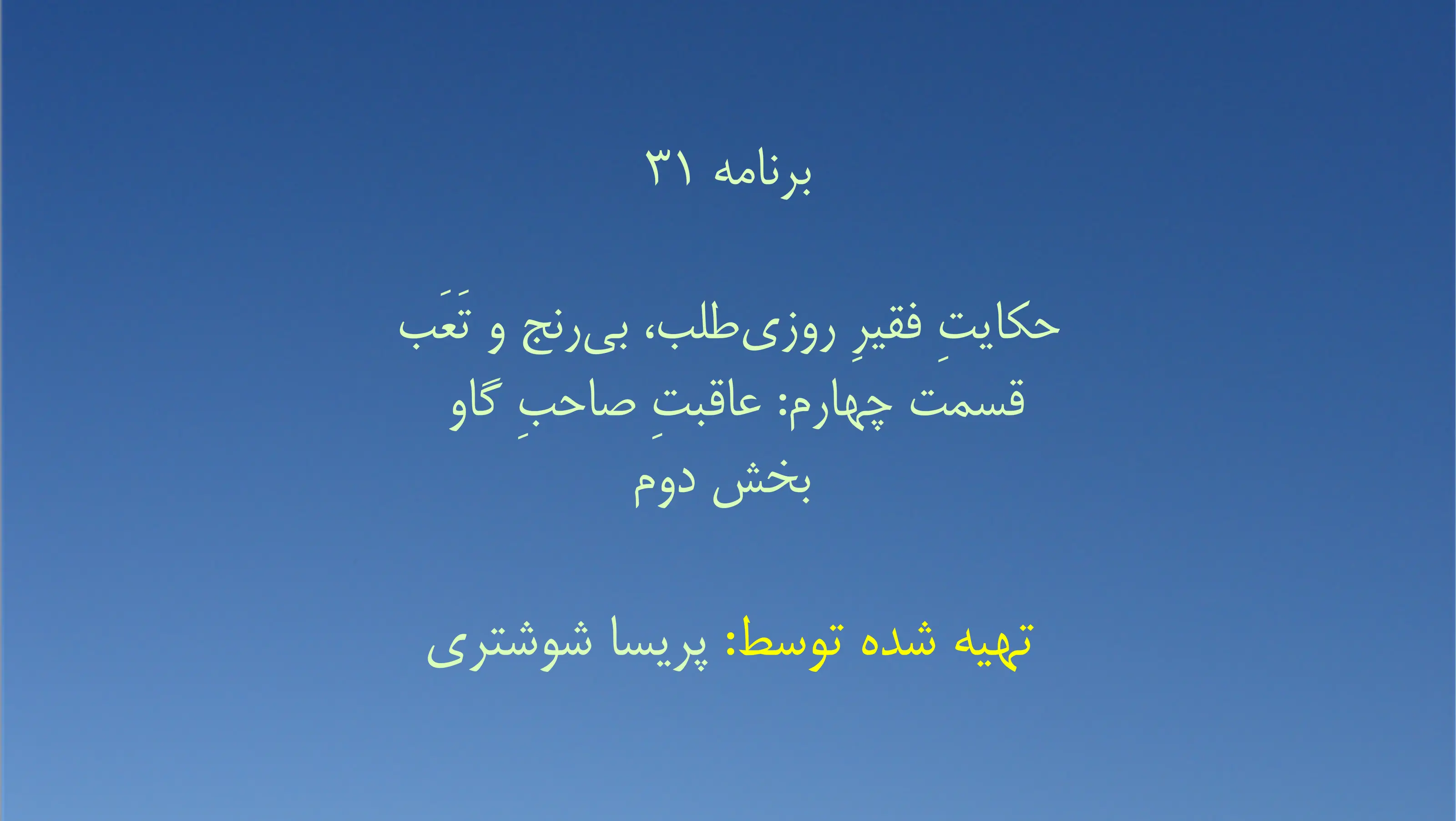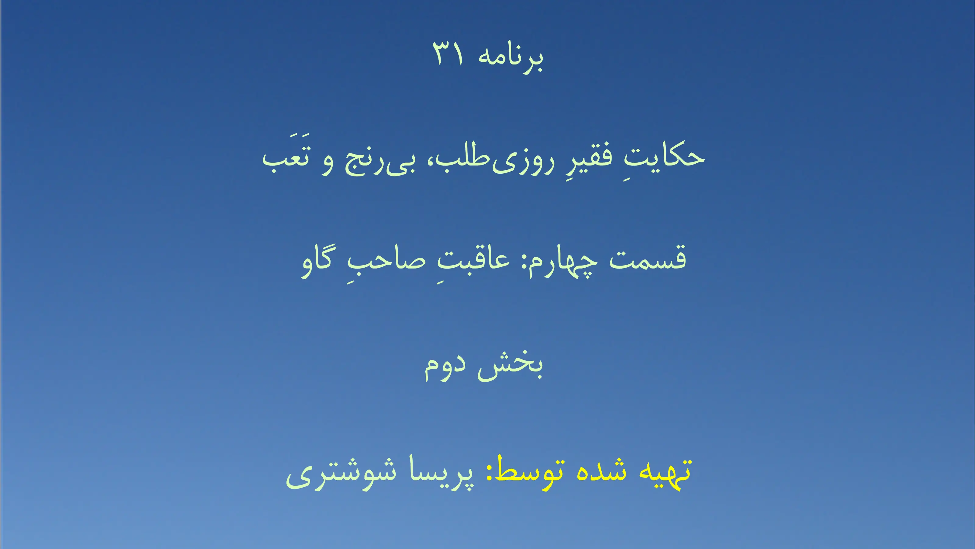 برنامه ۳۱- حکایتِ فقیرِ روزیطلب، بیرنج و تَعَب قسمت چهارم: عاقبتِ صاحبِ گاو - بخش دوم P ParvizShahbazi.com