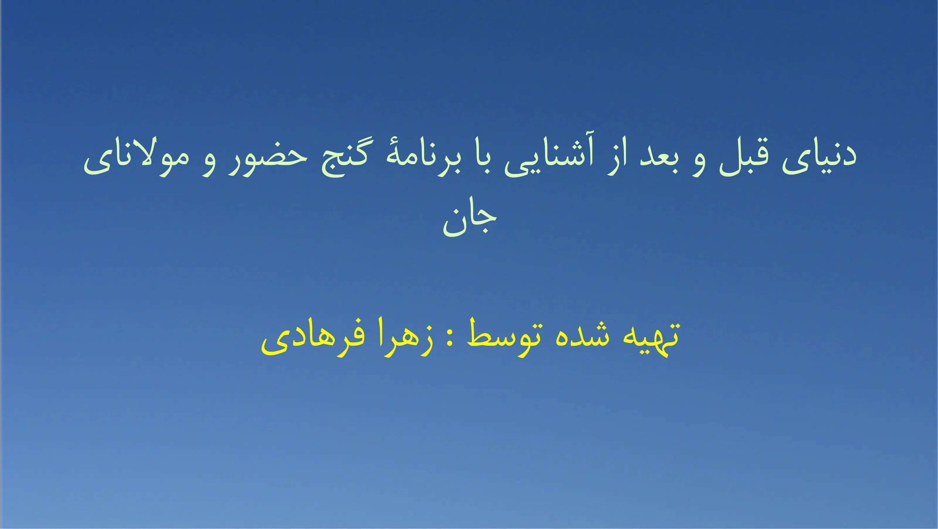 07:36ارسال شده در 1 نمایش2024/12/11دنیای قبل و بعد از آشنایی با برنامهٔ گنج حضور و مولانای جان P Parvizshahbazi.com